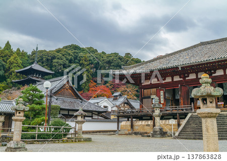 紅葉の當麻寺 国宝の曼荼羅堂(本堂)と護念院と国宝の西塔 2025年12月8日