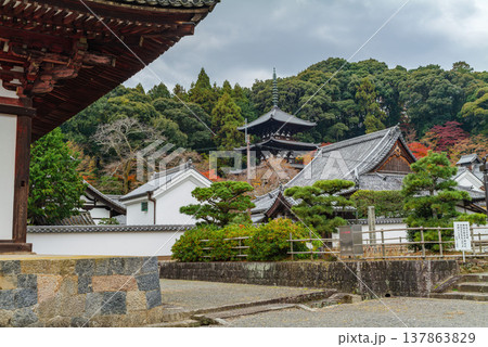 紅葉の當麻寺 国宝の西塔と護念院 2025年12月8日