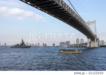 レインボーブリッジを通過する海上自衛隊・護衛艦「いかづち」