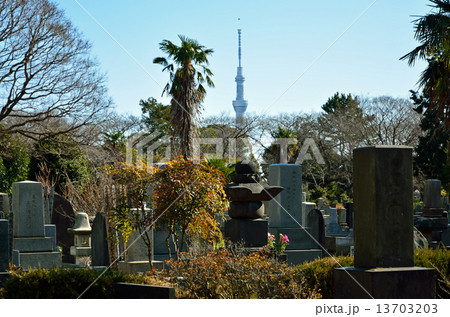 谷中霊園から眺めた「スカイツリー」(東京都台東区谷中7丁目)