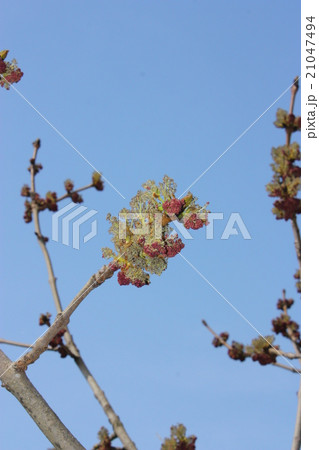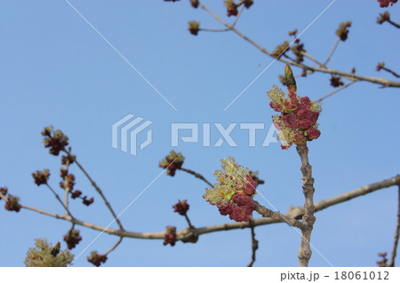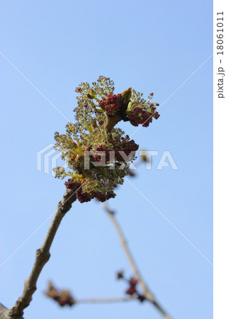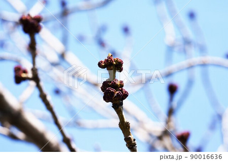 青空に映えるヤチダモの花芽