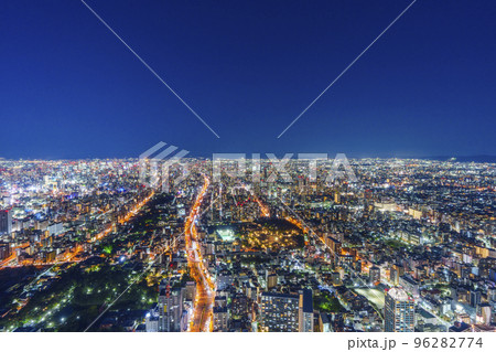 大阪あべのハルカス展望台から見た薄暮空の都会の街並み