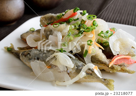 真鯵 小アジ 豆アジ 南蛮寺けのたれに鯵の唐揚げを漬ける