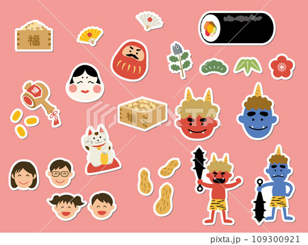 節分用の可愛いイラスト素材セット デザイン バナー作成
