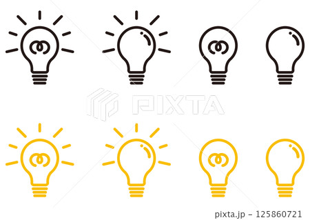電球のアイコンイラストセット ひらめき 発見