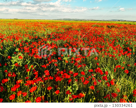 Field of red poppies in full bloom. Symbolism of remembrance, beauty, and the fleeting nature of life.