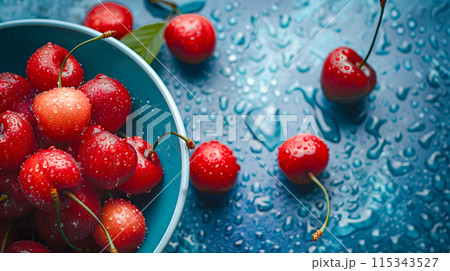新鮮な赤いさくらんぼ、季節の恵み、さくらんぼ狩りのイメージ
