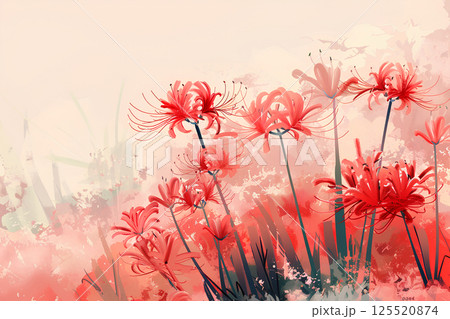 野に咲く幻想的な彼岸花のある風景イラスト