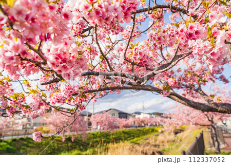 春の西古瀬川、満開の河津桜〈愛知県豊川市〉