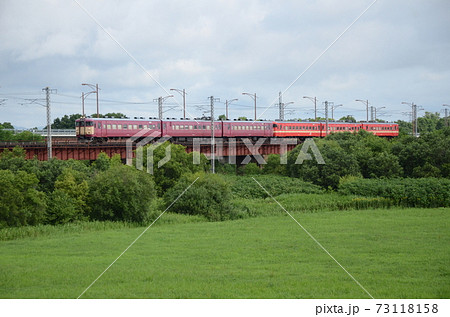 江別市内の夕張川鉄橋を渡り稚内駅へ向かう特急「スーパー宗谷」(後追い)