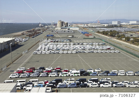 埠頭に並ぶ自動車