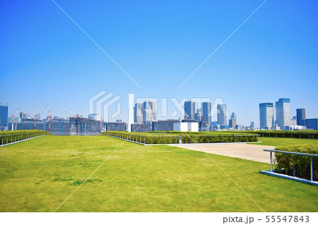 東京 豊洲市場 屋上緑化広場から見る豊洲側の風景