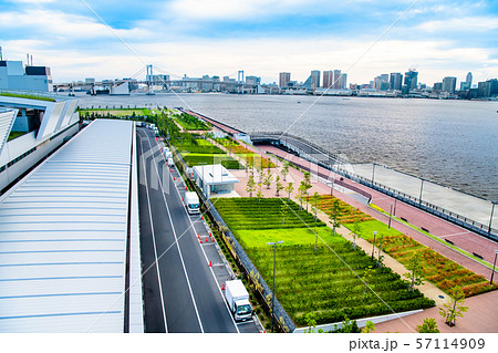 東京 豊洲市場 屋上緑化広場から見るお台場側の風景