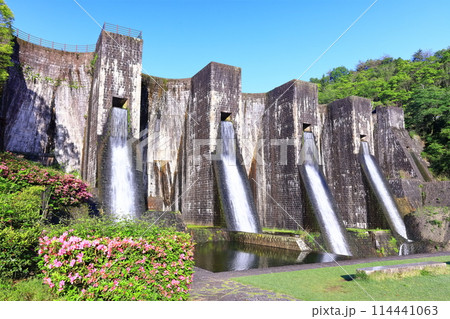 【香川県】ツツジ咲く春の豊稔池ダム(豊稔池堰堤)国最初の石積式多連マルチプルアーチダム