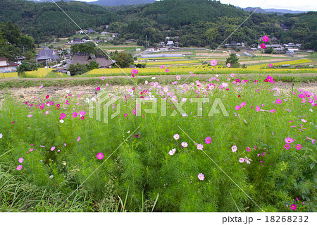 長谷(ながたに)の棚田(初秋、コスモス)「日本棚田100選」「にほんの里100選」