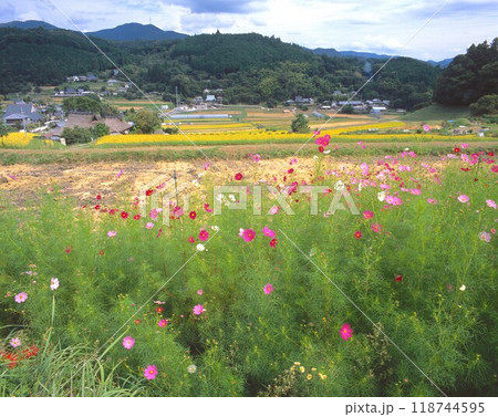 長谷の棚田 (ながたにのたなだ)「日本の棚田百選」/ コスモスと稲穂 / 収穫の季節