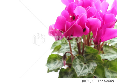 ピンクのガーデンシクラメンのクローズアップ 【白背景】