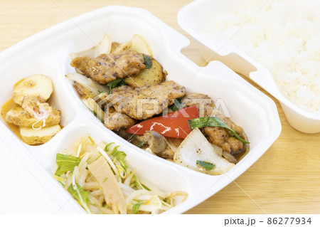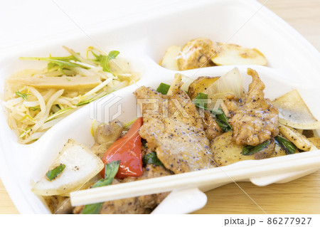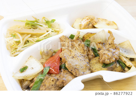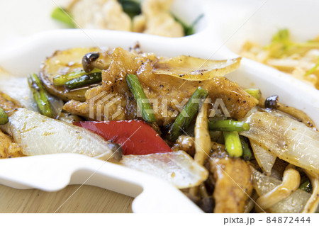 美味しいテイクアウトの豚肉と野菜の炒め物