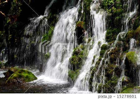 初夏の元滝伏流水と元滝川の流れ 秋田県にかほ市