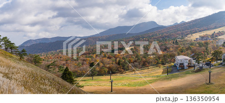 日本 鳥取県西伯郡大山町にある豪円山のろし台から眺める風景と紅葉した木々