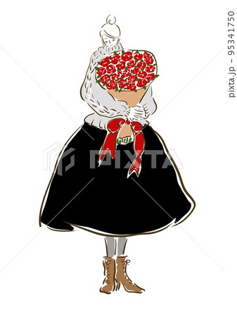 パリジェンヌ 女の子 おしゃれ イラスト ファッション 花束 薔薇