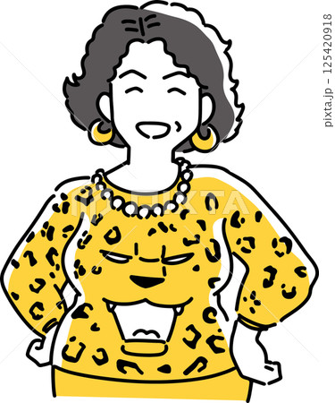 ヒョウ柄の服を着てポーズをとるおばさん