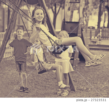 View on children swinging together on children's playground