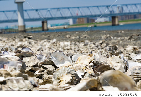 江戸川河川敷 貝殻だらけ 牡蠣 カキ