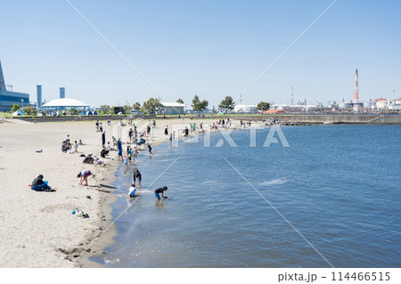 東扇島東公園内の人工海浜(かわさきの浜)で潮干狩り