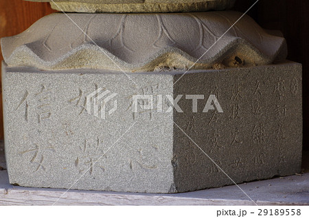 信州の文化財 名工 守屋貞治の石仏 か羅陀山地蔵菩薩像 台座の文字(長野県中川村田島)