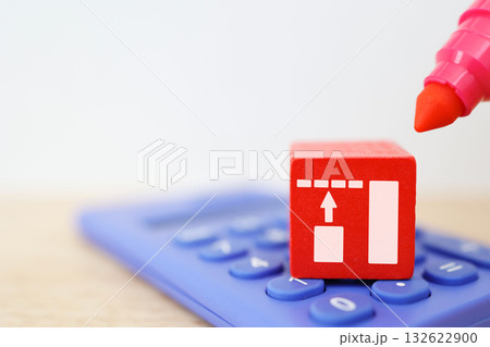 物価高や増税を示す上昇グラフと電卓のマネーイメージ。