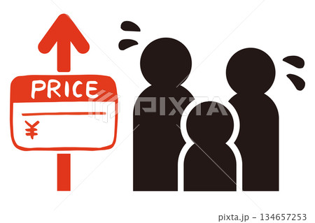 物価高と家族のベクターイラスト|家計負担・生活不安・インフレ対策のイメージ