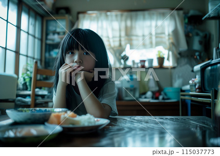 部屋でひとりの女の子イメージ 一人っ子 女子小学生 寂しい AI生成