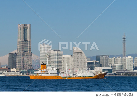 LPG 貨物船と横浜みなとみらい