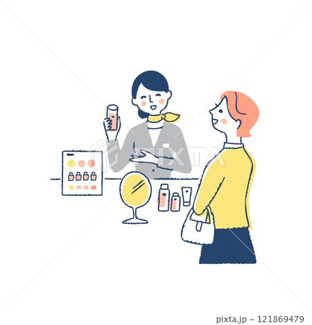 コスメショップで接客する女性スタッフと客
