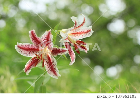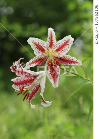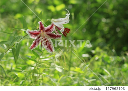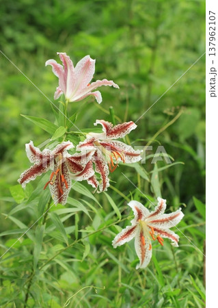 夏の里山に咲くベニスジヤマユリ 夏風景