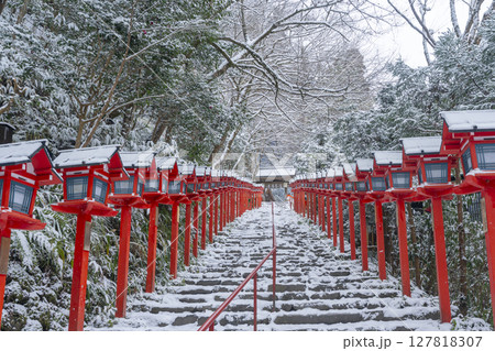冬の京都 貴船神社 春日灯籠が並ぶ美しい参道