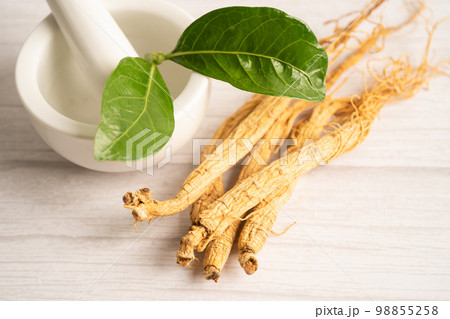 Ginseng, dried vegetable herb. Healthy food famous export food in Korea country.