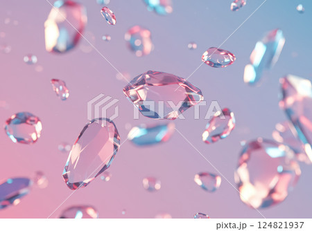 ピンクとブルーに輝く浮遊するクリスタル(AI生成画像)