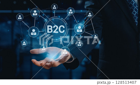 B2C Business Model with Consumer Delivery, Retail, and Growth Icons Elide