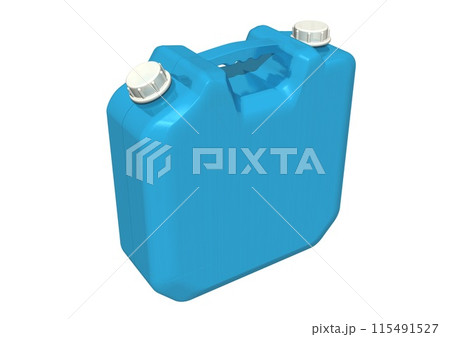 たくさん並んだ 青の灯油用ポリタンク(3DCGイメージ)
