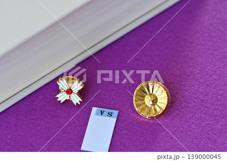 検察官バッチと弁護士バッチ 法廷対決イメージ
