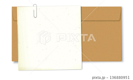 Old blank notepapers with stains effect attached by paper clip with brown envelope isolated