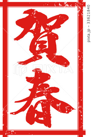 「賀春」年賀状用 朱印ハンコ調筆文字デザイン素材