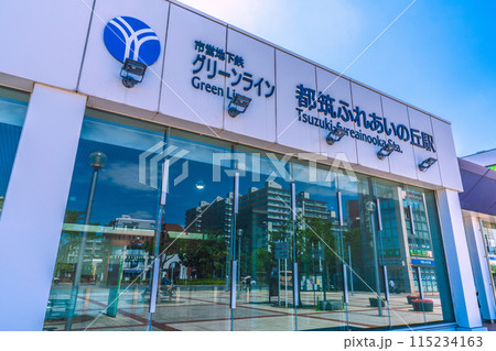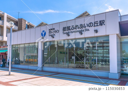 日本の横浜都市景観 横浜市営地下鉄グリーンライン 「都筑ふれあいの丘駅」前などを望む