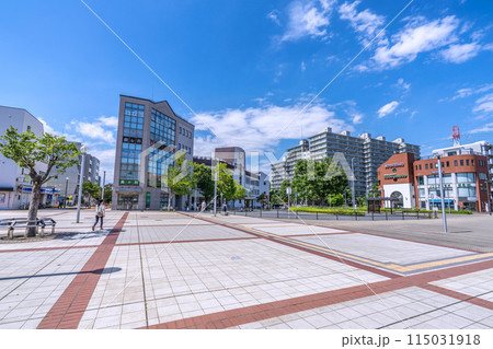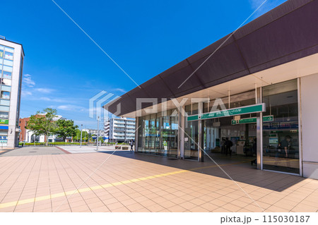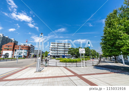 日本の横浜都市景観 地下鉄 センター南駅や駅前の街並みを望む