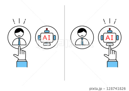ビジネス分野における人間かAIかの選択をイメージしたバリエーションイラスト