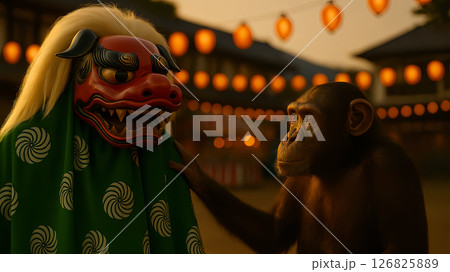 獅子舞を励ます!?夏祭りに迷い込んだチンパンジー