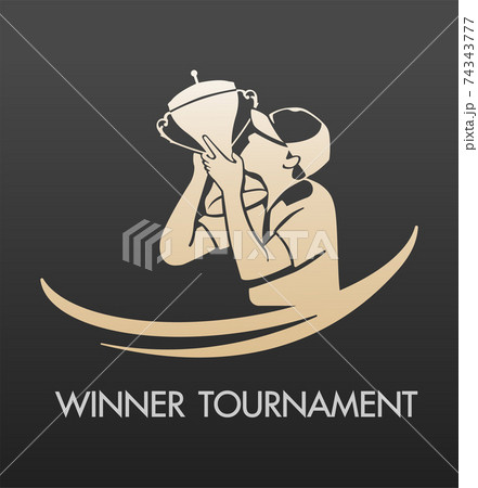 Man kissing trophy, tournament winner player logo illustration.