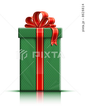 Green gift box with red silk ribbon and bow